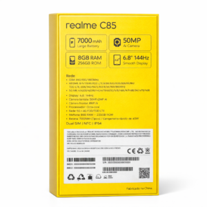 Realme C85 8GB 256GB 5G NFC Tela 6.8″ 144Hz Câmera 50MP AI Bateria 7000mAh 45W Dual SIM IP68/IP69K